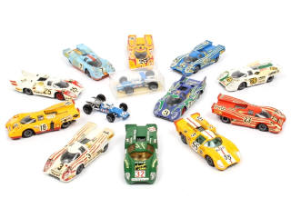 miniatures reproduisant notamment les modèles : PORSCHE, MATRA & LOLA - avec manques & parties cassées - décalques ajoutés & détails de peinture ajoutés - une carrosserie encrassée