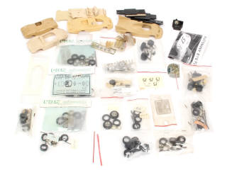 plusieurs exemplaires sous sachet jamais ouvert - comprend notamment : grappe de rétroviseurs, roues, pneus, carrosseries (plusieurs Le Mans), jantes, moteurs & aménagements..! - on y retrouve notamment les marques : FDS, STARTER & TENARIV
