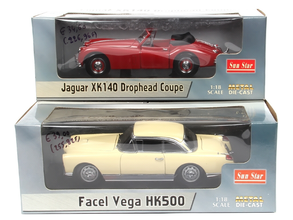 échelle 1/18ème - comprend : FACEL VEGA HK500 & JAGUAR XK140 DROPHEAD coupé