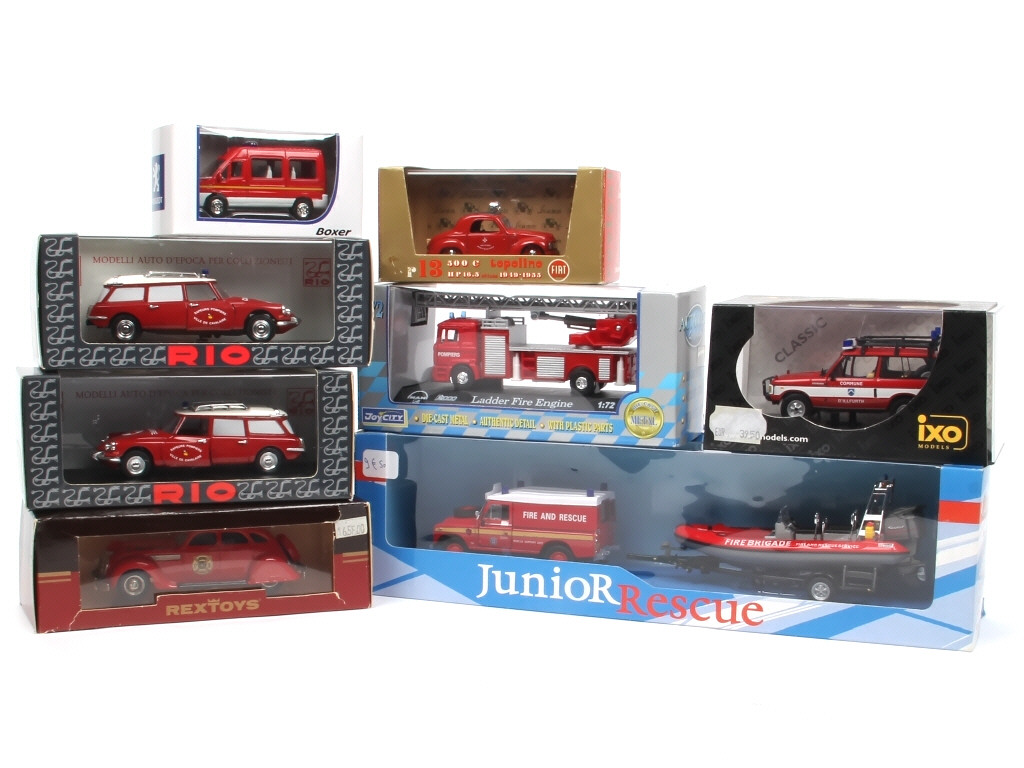 miniatures reproduisant notamment les modèles : PEUGEOT, CITROEN, FIAT, RANGE ROVER & MAN - on y retrouve les marques : RIO, REXTOYS, IXO, BRUMM & CARARAMA