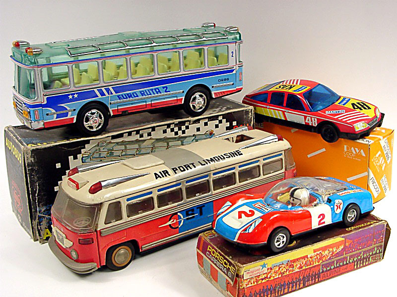 longueur 38 cm - moteur à friction (fonctionne) - manque 2 enjoliveurs de roues & un aérateur de toit - une fêlure sur le pare-brise côté droit & retouches de peinture sur la caisse - légère décoloration du côté gauche