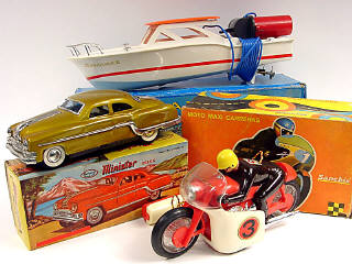 longueur 25 cm - moteur à piles (fonctionne) - la moto change de direction par blocage de l'une des petites roues motrices lorsque l'on effectue une marche arrière - petit manque de plastique au niveau de la fixation du moteur