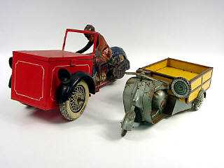 J.M.L. JOUETS MAGNIN - LYON (FRANCE) Triporteur en tôle lithographiée rouge & noir
