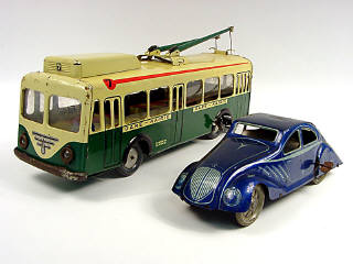 JOUSTRA (FRANCE) Trolleybus en tôle lithographiée vert & crème