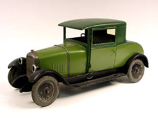 longueur 40 cm - moteur à clef (à revoir) - direction par le volant - phares normalement électriques non d'origine avec ampoules manquantes - dessous du châssis en peinture d'origine