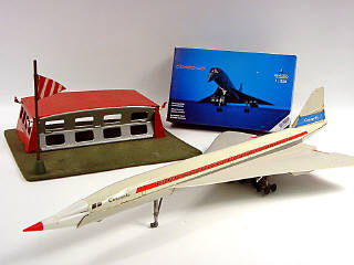 longueur 58 cm - moteur à friction (fonctionne) - manque les roues du train d'atterrissage avant - système permettant l'abaissement du nez de l'appareil à revoir