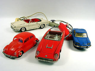 longueur 28,5 cm - moteur à piles (à revoir) - avec direction (fonctionne) - phares électriques - manque le hard-top - pare-chocs avant fendu & chromes ternis - une extrémité de pare-chocs arrière cassée