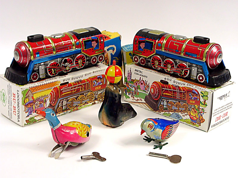 longueur 16,5 cm - moteur à ressort (fonctionne) - en action, la locomotive tourne en rond - avec bruiteur