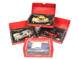 échelle 1/18ème - comprend : BUICK CENTURY 1955, BMW 327 coupé 1937 (2 exemplaires) & CHRYSLER ATLANTIC - on y retrouve les marques : GUILOY & MIRA