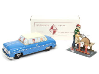 fonctionne - on y joint une BORGWARD HANSA 1500 en tôle lithographiée de la marque TUCHER & WALTHER (longueur 21cm - moteur à clef fonctionne en état 'A.a)