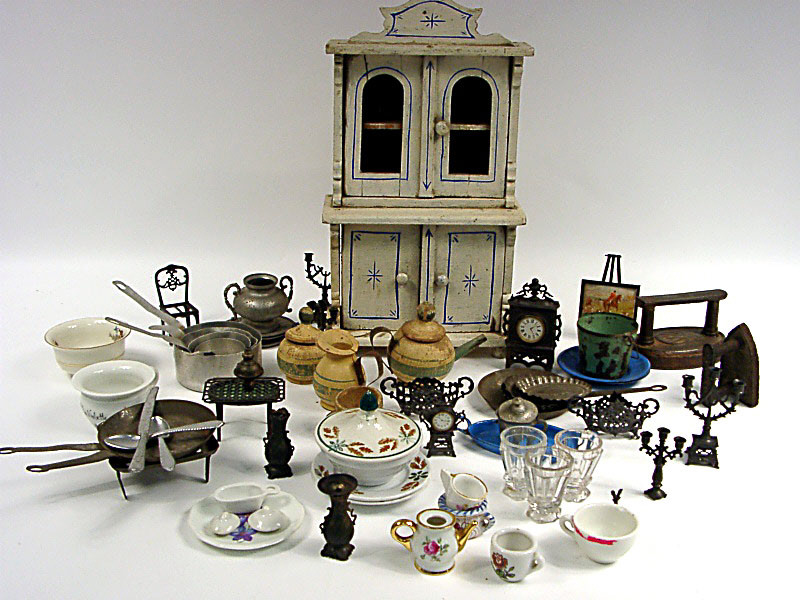 comprend notamment : un buffet vaisselier, 2 fers à repasser, des éléments en porcelaine, des éléments en métal & d'autres en bois