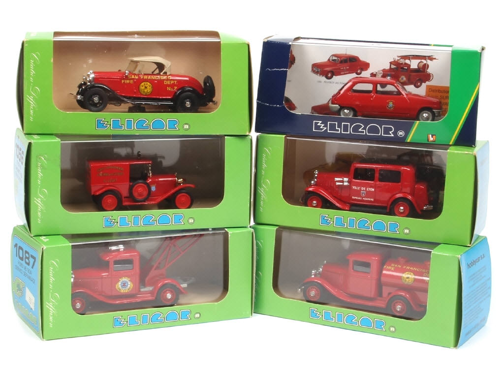 ELIGOR (FRANCE) Ensemble de 6 véhicules de pompiers