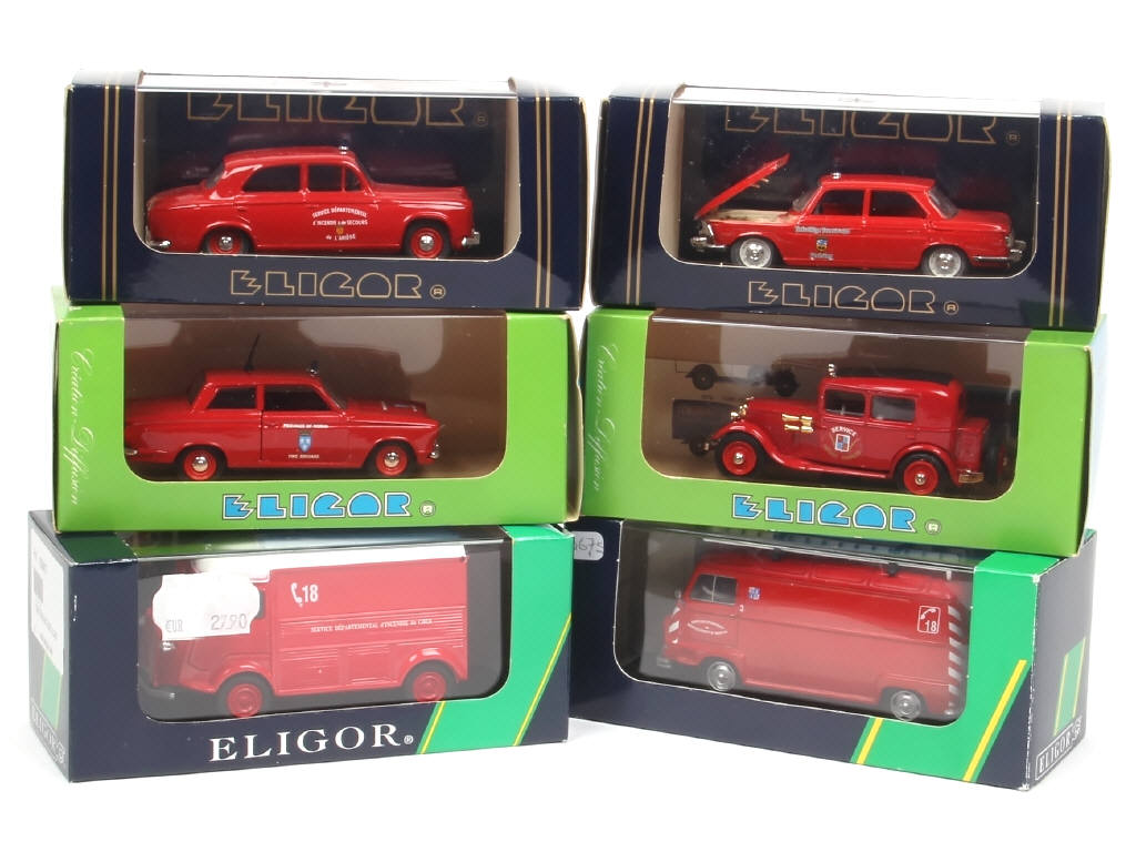 ELIGOR (FRANCE) Ensemble de 6 véhicules de pompiers