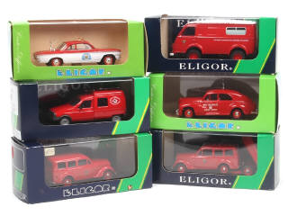 ELIGOR (FRANCE) Ensemble de 6 véhicules de pompiers
