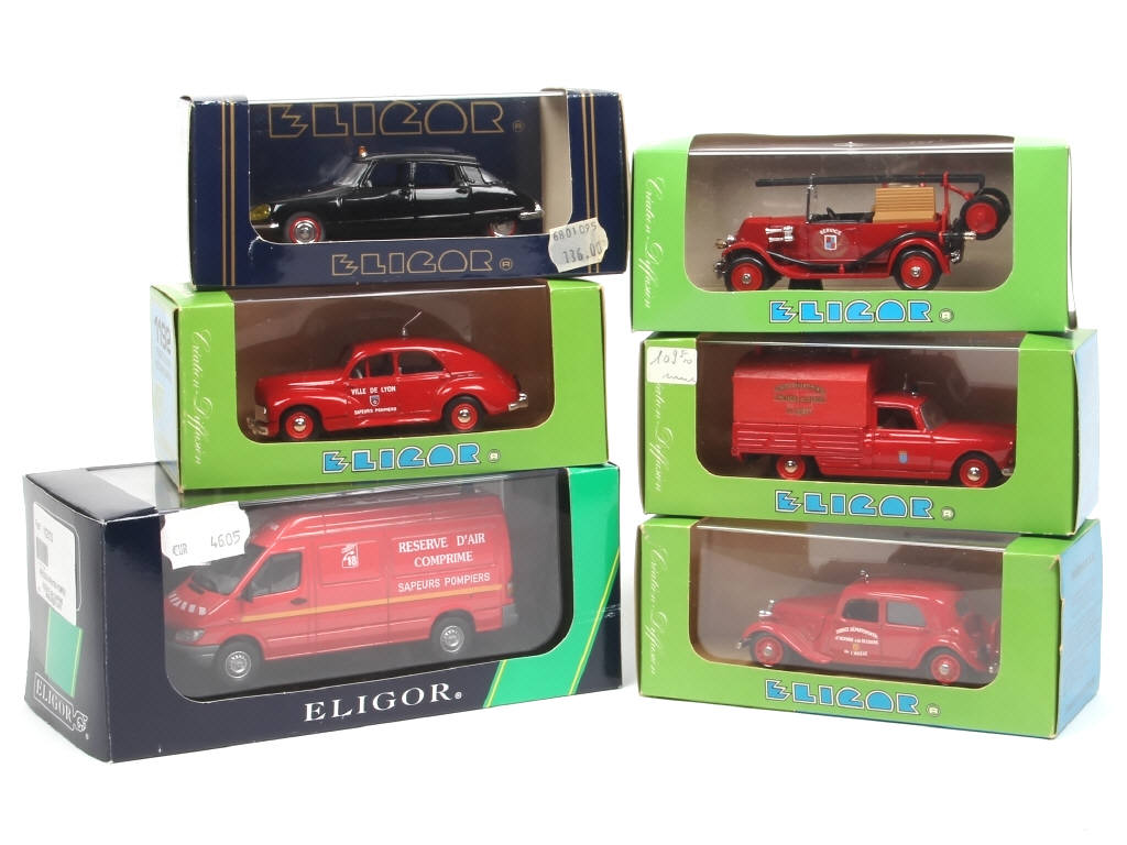 ELIGOR (FRANCE) Ensemble de 6 véhicules de pompiers