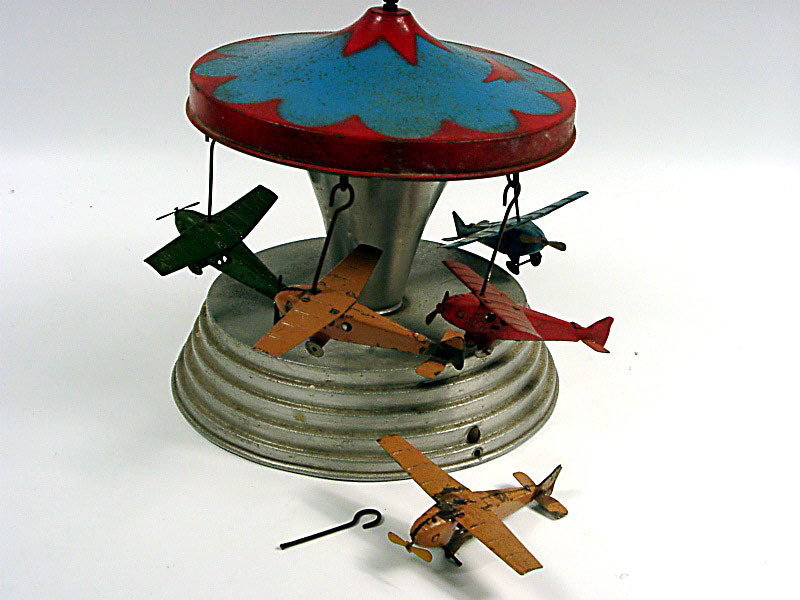 DIVERS Manège d'avions en tôle lithographiée aluminium, bleu & rouge
