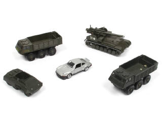 comprend les modèles : PORSCHE, BERLIET, COMBAT CAR & CHAR M14 - avec manques - quelques traces d'oxydation sur un modèle
