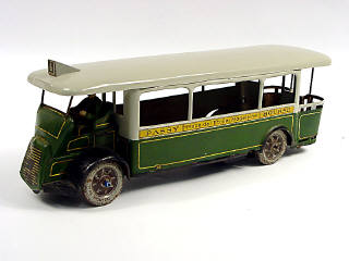 longueur 29 cm - moteur à clef (fonctionne) - avec direction - fabrication de 1937 - les indications de direction latérales, les liserés & les roues sont en peinture d'origine - manque pare-chocs avant