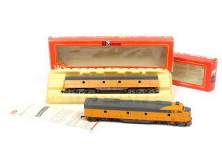 RIVAROSSI 'HO' (ITALIE) Ensemble de 2 matériels ferroviaires 'UNION PACIFIC' jaune, gris & rouge
