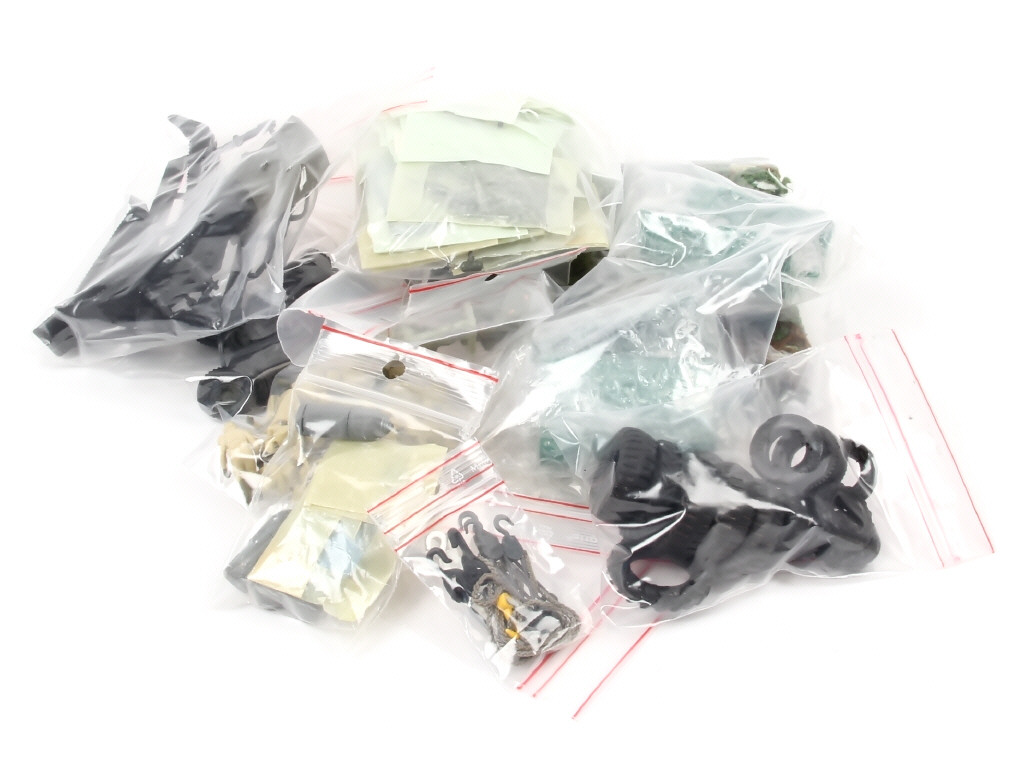 comprend notamment : des roues, pneus, figurines, filets de camouflage... - on y retrouve notamment les marques : SOLIDO & DINKY TOYS - petits manques