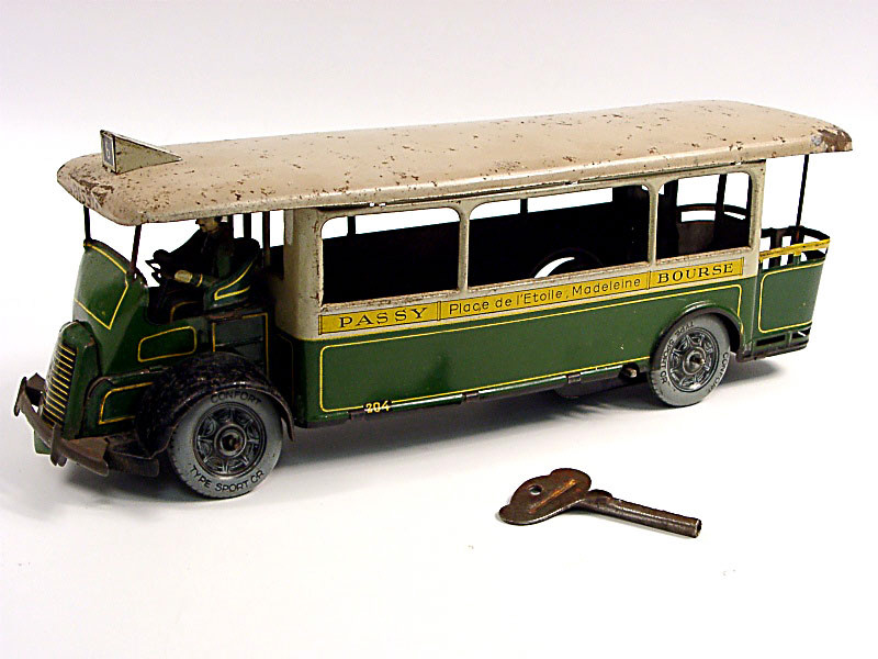 longueur 29 cm - fabrication de 1937 - moteur à clef (fonctionne) - avec clef & direction - traces d'oxydation