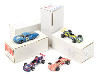 kits montés - comprend les modèles : A360, LM 1964 & A364 (2 exemplaires) - on y retrouve les marques : ELIGOR (boîte non d'origine), TENARIV & MINI RACING - quelques éléments cassés à recoller sur 2 explaires