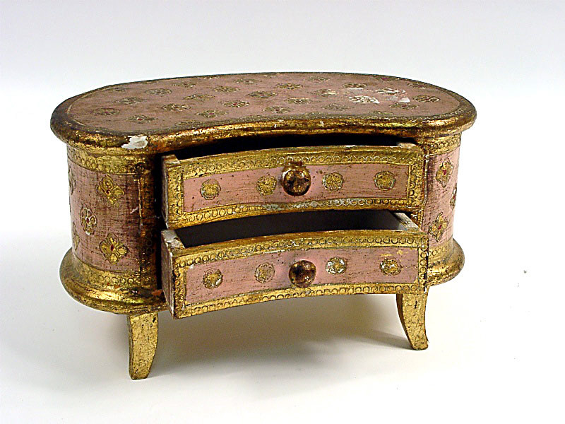 DIVERS (ITALIE) Petite commode en demie-lune à 2 tiroirs vieux rose & or