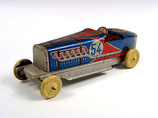 M.L. (FRANCE) 510 Auto de course biplace en tôle lithographiée bleu ciel & rouge