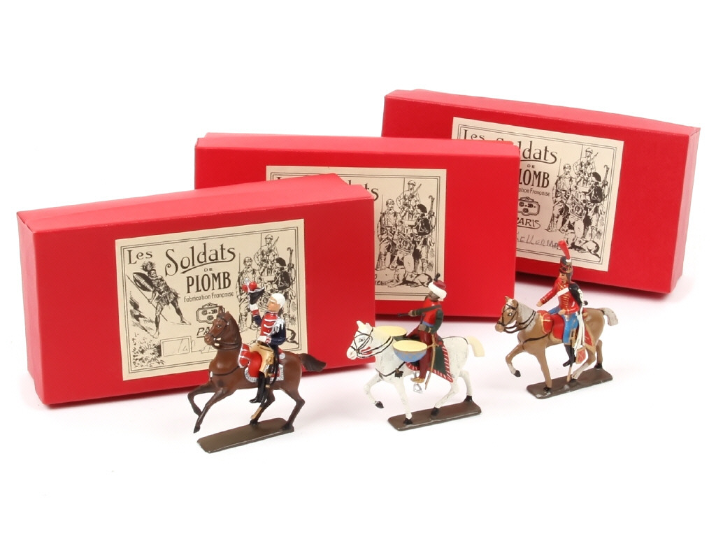 C.B.G. (FRANCE) Ensemble de 3 figurines du Premier Empire sur leur monture