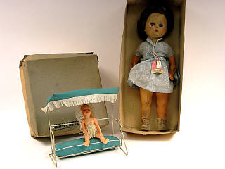BETTINA (FRANCE) Baigneur en plastique sur canapé-balançoire de jardin chair
