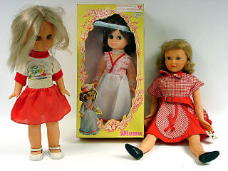 hauteur 43 cm - articulée - yeux mobiles bleus - perruque blonde - avec robe à carreaux & étiquette 'TOILE MAJOR' d'origine