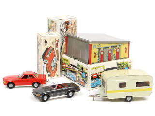 KOVAP (TCHECOSLOVAQUIE) Ensemble de 2 voitures MERCEDES 350 SL, une caravane & un garage