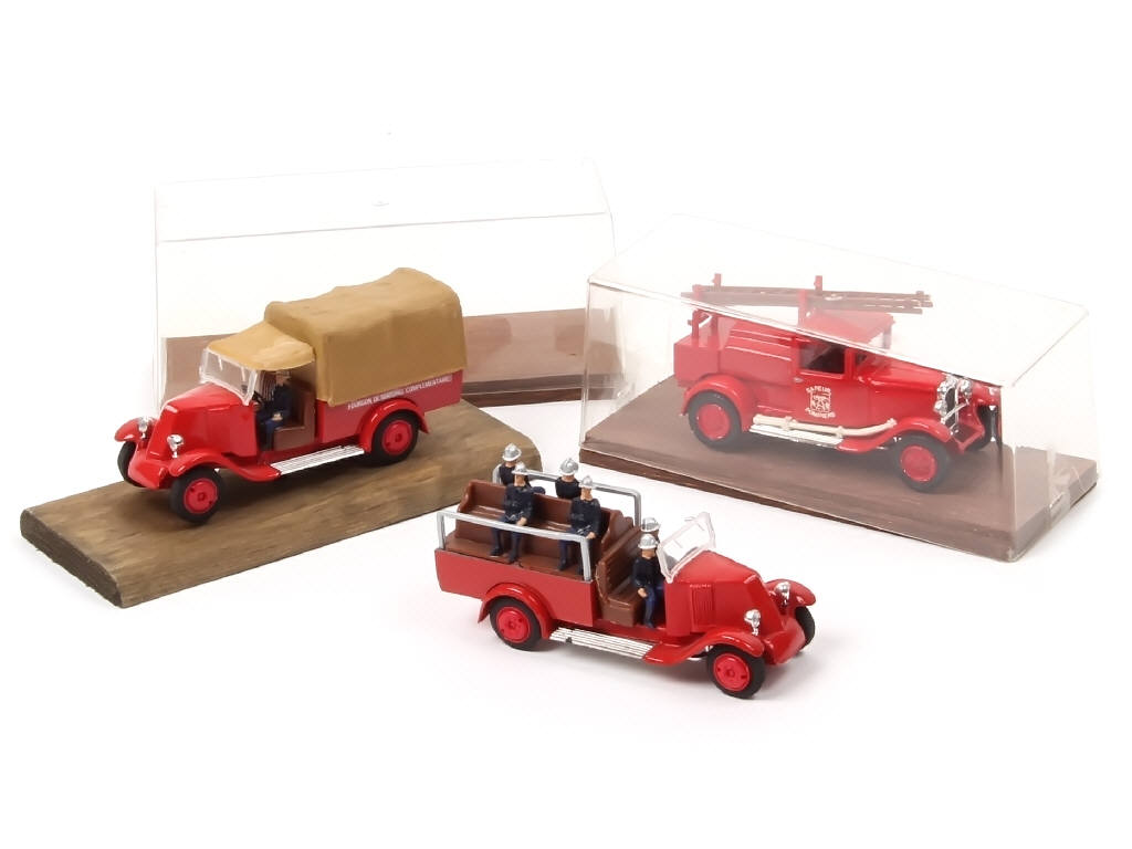MICAROLA (FRANCE) Ensemble de 3 camions français de pompiers rouge