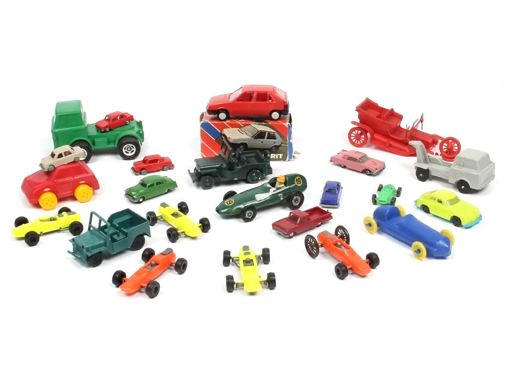 avec manques & parties cassées - on y retrouve notamment les marques : PNEUMANT SPIELZEUG, EKO, BONUX, SAM TOYS, AIRFIX, WIKING TOYS & GALANITE - quelques traces d'oxydation