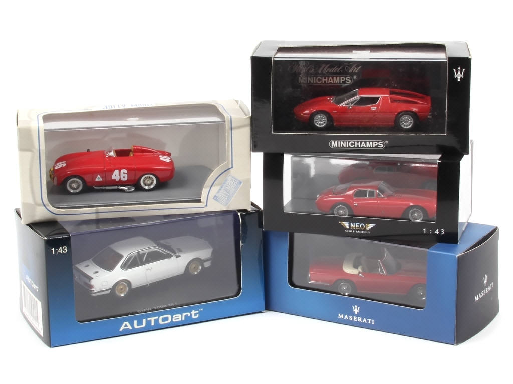 miniatures reproduisant les modèles : ALFA ROMEO, MASERATI & BMW - on y retrouve les marques : MINICHAMPS, JOLLY, NEO, AUTOART & IXO