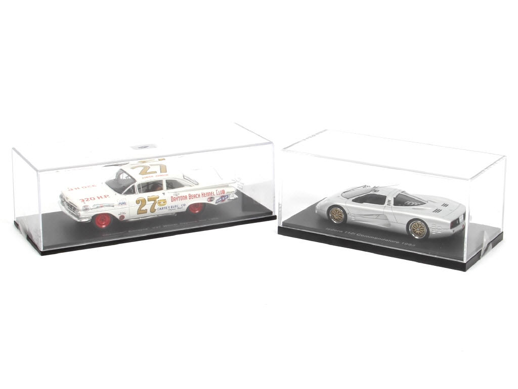 comprend : CHEVROLET BISCAYNE (1ère DAYTONA 500 1960) & ISDERA 112i COMMENDATORE 1993 - on y retrouve les marques : SPARK & BOS MODELS