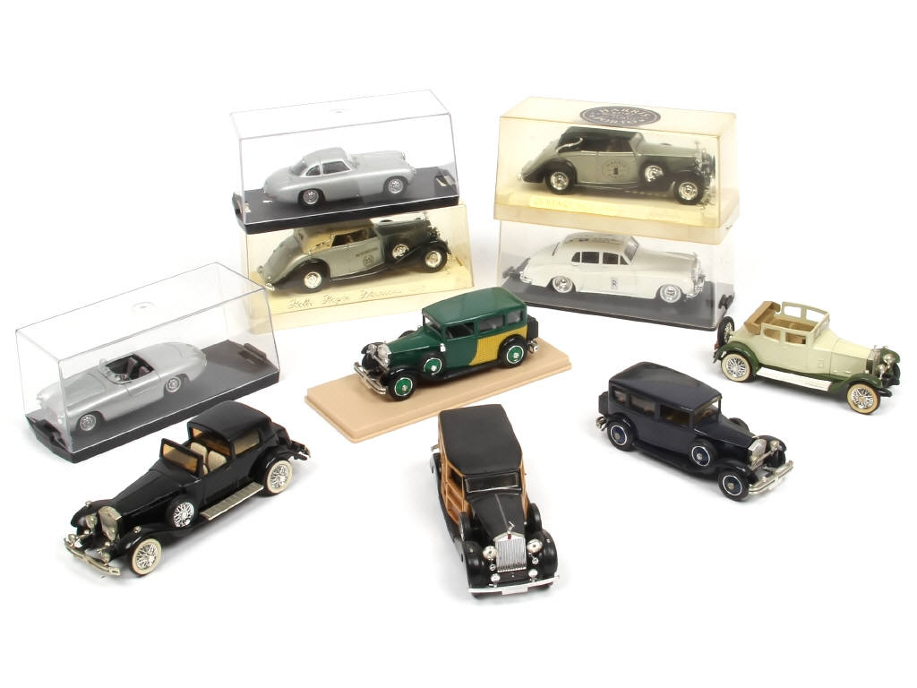 comprend notamment les modèles : ROLLS ROYCE & MERCEDES - on y retrouve notamment les marques : VEREM, BANG, ELIGOR, RIO & SOLIDO - avec manques & parties cassées - 5 exemplaires en boite (état 'b')