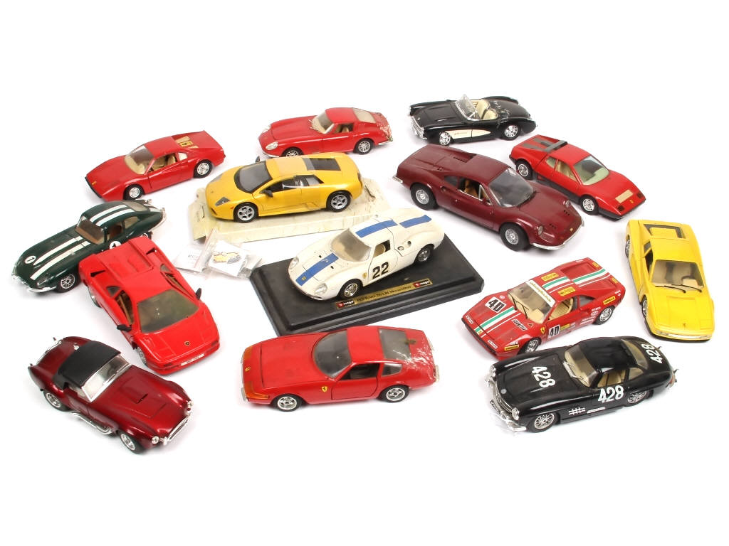 différentes échelles - avec manques & parties cassées sur certains exemplaires - on y retrouve les marques : BBURAGO, MAJORETTE & ANSON - carrosseries plus ou moins encrassées