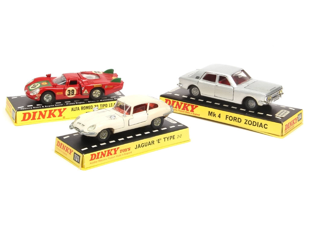 comprend : ALFA ROMEO TIPO Le Mans & FORD ZODIAC MK4 - on y joint une JAGUAR type 2 (GB) avec retouches & parties amovibles de teinte différente du reste de la carrosserie