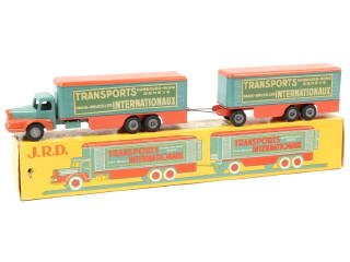 JRD (FRANCE) 127 UNIC LAUTARET 'TRANSPORTS INTERNATIONAUX' avec remorque vert canard & orange