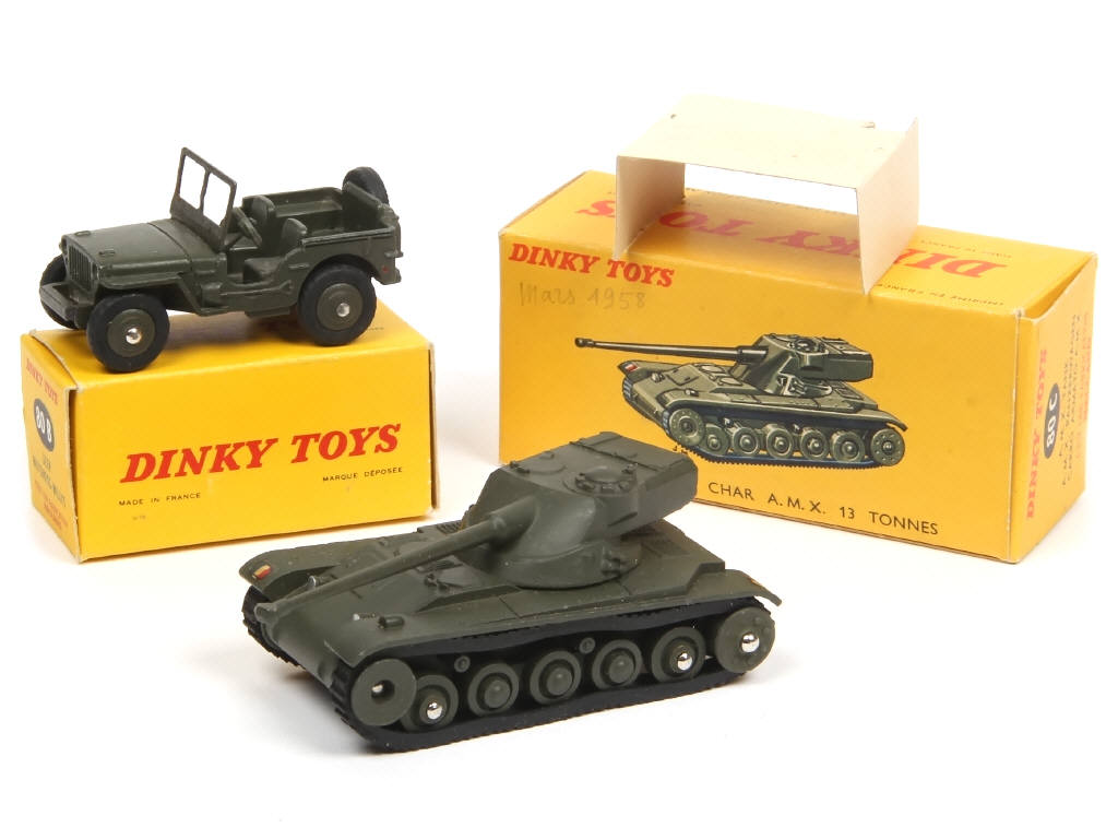 comprend : char AMX 13 & JEEP WILLYS (version sans conducteur & crochet - pare-brise avec micro-éclats & oxydation) - boites en états 'a' & 'b'
