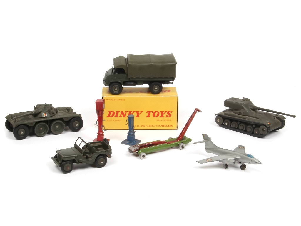 DINKY TOYS (FRANCE) Ensemble de 5 véhicules militaires & 3 accessoires