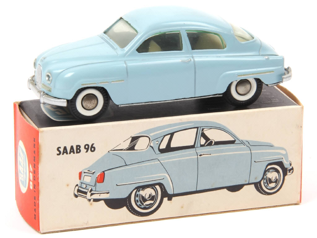 TEKNO (DANEMARK) 827 SAAB 96 1961 bleu pâle, intérieur crème