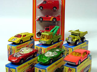 comprend : une camionnette des années 30, une voiture de course & une fourgonnette - ensemble sous blister - jamais déballé - réalisé par MATCHBOX pour PROMOD LTD en 1987