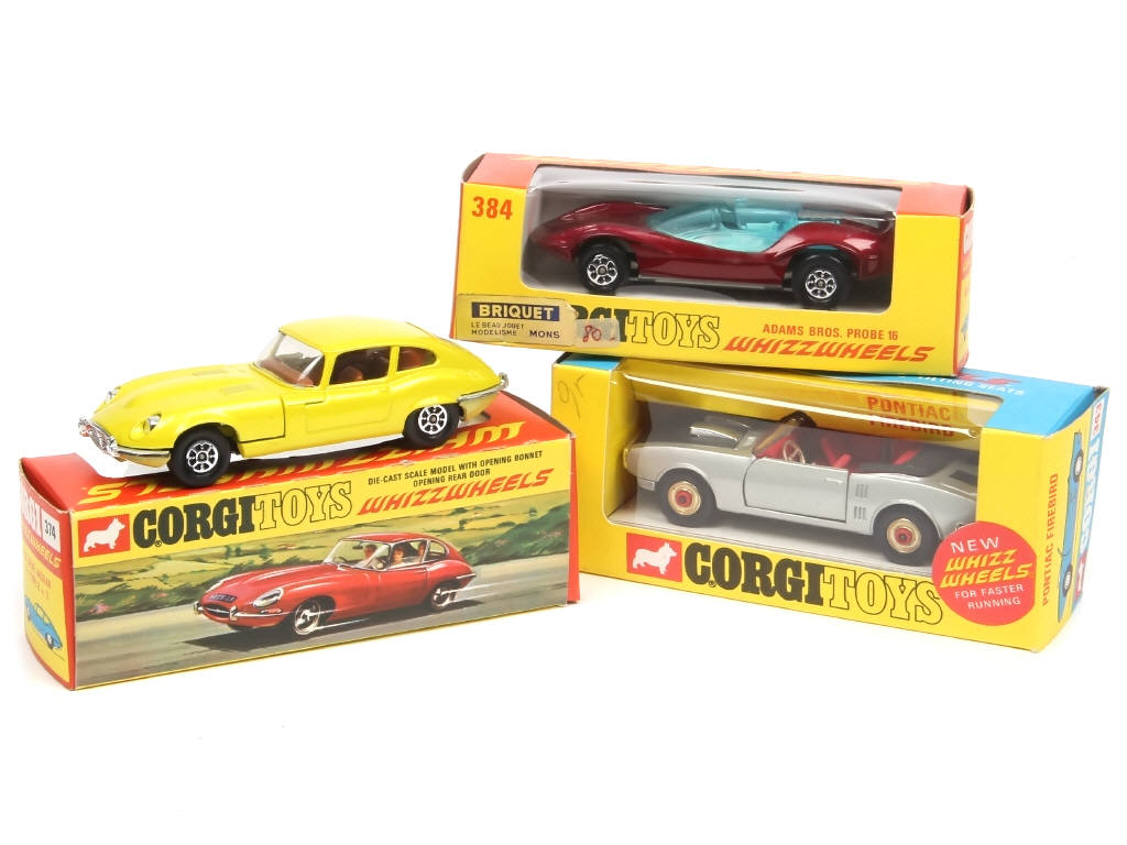 comprend : PONTIAC FIREBIRD cabriolet, JAGUAR Type 'E' & ADAMS BROS. PROBE 16