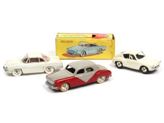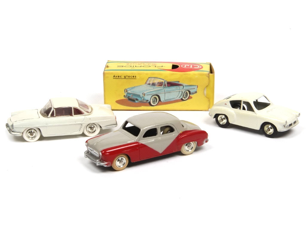 comprend : RENAULT FLORIDE cabriolet 1960 (détails de peinture ajoutés sur le pourtour du pare-brise & le hard-top - boite en état 'c' avec traces d'humidité), ALPINE A106 type MILLE MILES & RENAULT FREGATE GRAND PAVOIS - quelques pneus non conformes