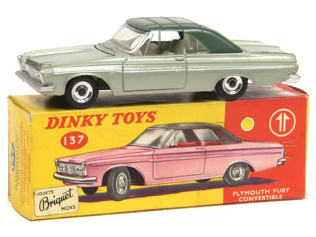 DINKY TOYS (GB) 137 PLYMOUTH FURY Convertible vert métal, capote verte