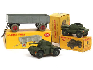 comprend : ARMOURED CAR, SCOUT CAR DAIMLER & remorque à 4 roues - quelques pneus séchés - boites en états 'b' & 'c'