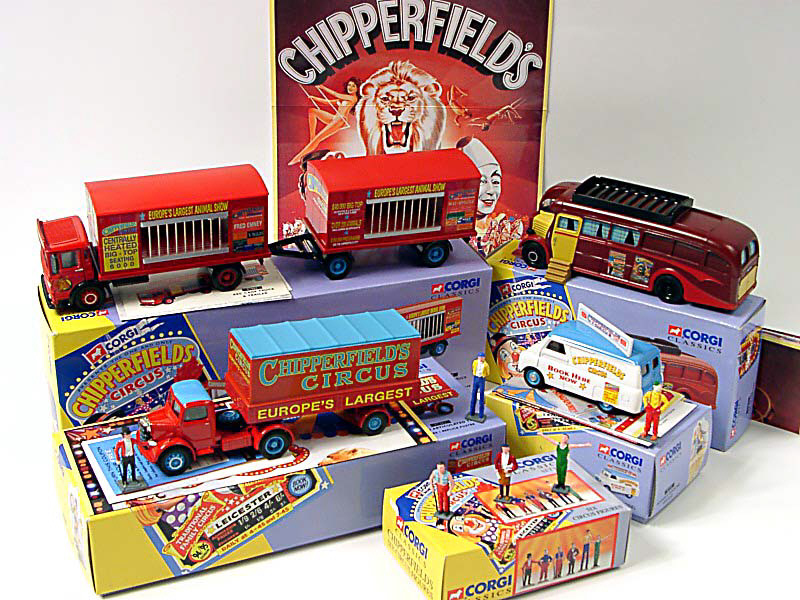 'CHIPPERFIELD'S CIRCUS' - année 94-95 - avec certificat n° 04820/12500 - avec une petite carte de collection 'THE CHIPPERFIELDS' BIG CATS', un petit dépliant sur la gamme 'CORGI CLASSICS' & un fac-similé en format réduit d'une affiche de la tournée dans la ville de CHESTERFIELD