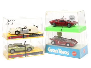 série 'GRAN TOROS' - comprend les modèles : FIAT, CHAPARRAL(état 'R'), MASERATI & ALFA ROMEO - manque un élastique de maintien & une étiquette de désignation